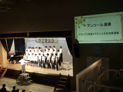 午後の部では、3年生の合唱発表とパートリーダー合唱、そして表彰・閉会式の後、3年生金賞クラスの自由曲が熱唱されました。