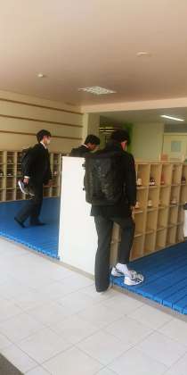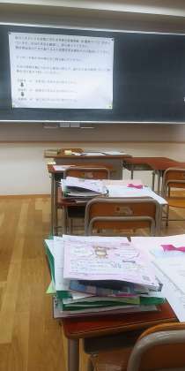 3年生の登校時間は、13:00〜14:30までです。教室には、担任の先生が返却物を整え、待ち構えています。作文を、リボンで閉じてあるクラスもあります。