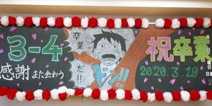 3年生各科洋室には、担任と副担任からの黒板アートの力作が…
