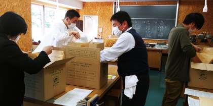 さて、いよいよ分散登校が、来週の月曜日と火曜日に迫っています。今日は、朝から多くの先生方が、登校日に向けて配布物の準備を整えています。ギリギリに配布する書類が届くなど、終日の手作業が続きました。準備は万端です。