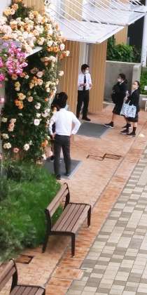 今日は、朝から降っていた雨がやんで、とても涼しい季候となっています。雨上がりの中庭の花々も、とても美しいので待ち時間に景色を楽しんでください。