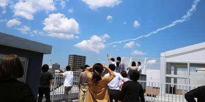 今日は、いよいよ来週から始まる分散授業の準備で全教職員が職員会議と学年会などを行いました。午前中の予定が終わり、本日イベントは屋上での観覧となりました。