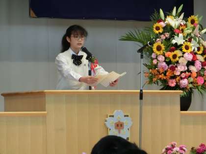 在校生代表の言葉は、上級生として新入生を暖かく迎えて支えたいという優しさに溢れていました。