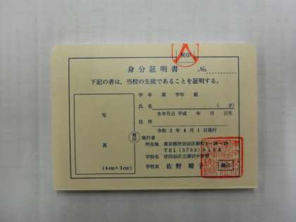 今週、生徒手帳裏面の身分証明書の為の写真撮影がありました。上級生は慣れていますが1年生は初めての事なので少し緊張していたようです。大人の仲間入りの一歩として大事なものとなりますので大切に取り扱いをしてください。