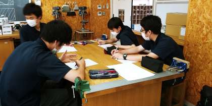 そして、技術部(金工室)は、新入生勧誘のポスター製作に励んでいました。進捗状況が楽しみです。