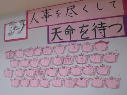3年生の教室には、今年度の目標が絵馬になって掲示されていました。生徒たちは、3年生として、深沢中学校を引っ張っていく存在になるという決意を胸に日々頑張っています。そんな3年生を、深沢中学校は、最大限に応援し支え続けます。
