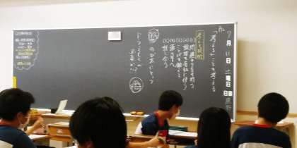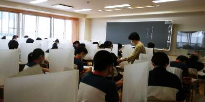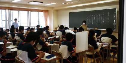 2年生の教室では、ローテーション授業という方式で、それぞれの先生方がテーマを受け持ち、各教室でそれぞれのテーマについて考える授業が行われていました。