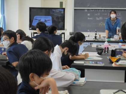 本日の理科室では、授業動画を使用した理科の実験振り返り(まとめ)の様子をご紹介します。理科室では、連日の授業が多く行われています。ようやく実験などができるようになり、ICTも活用しながら行っています。