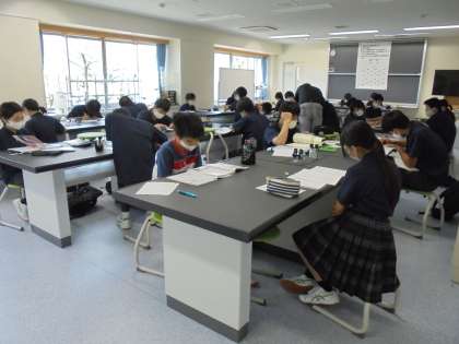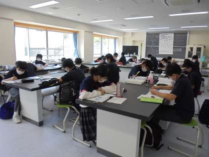 2時間目、理科室は3年生と2年生が学習中です。もう少しで2時間目が終わろうとしているのですが、集中力が半端ありません。