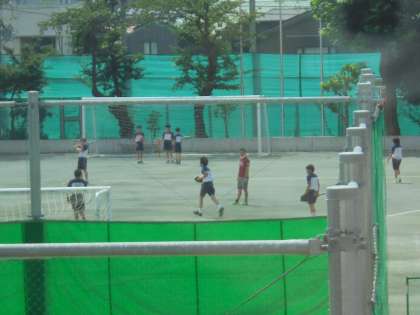 本日の2時間目、2年生保健体育は、男子が校庭でソフトボールを行っています。楽しそうにキャッチボールをしています。