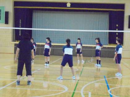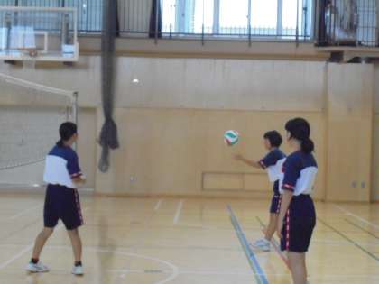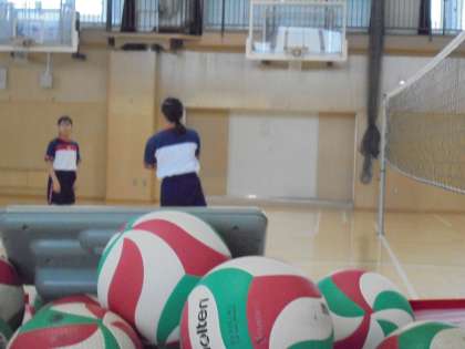 2年生女子は、アリーナでバレーボルを行っています。徐々にサーブに慣れてきて、ゲームが進んできました。