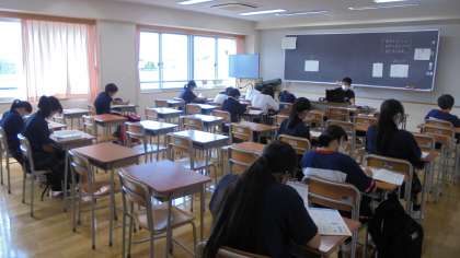 今日も暑い一日が始まりました。一年生は今日も集中して勉強に取り組んでいます。一時間目の国語と二時間目の数学の時間に、学習の妨げにならないよう、こそっと後ろから写真を撮りました。表情が見えなくても、後ろ姿から熱心に取り組んでいるのが伝わってきました。 (国語科 中越)
