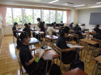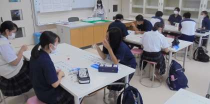家庭科はボタンを縫い付けるために、基本的な技術の練習をしていましたが、みなさんとても楽しそうに取り組んでいました。