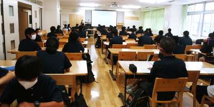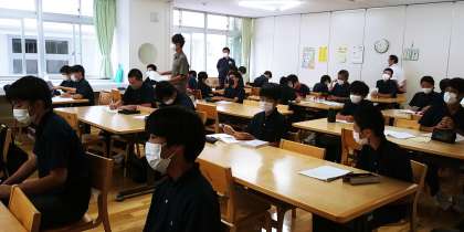 今年度から、小学校でも外国語の授業が始まっているということで、学び舎の小学校から異校種体験研修のためお越しくださった先生がいらっしゃいました。始業前には、小学校でお世話になった先生との再会に、しっかり挨拶を交わしている生徒もいて、微笑ましい情景でした。