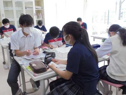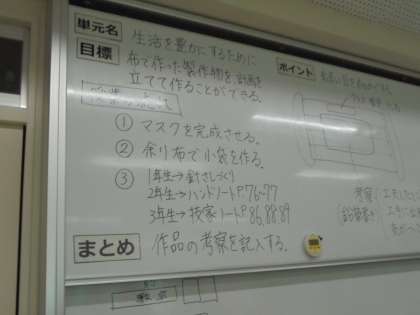 コロナ禍ならではの作品「マスクつくり」を行っていました。深い学びに欠かせないペアによる(ソーシャルディスタンスを保ちながら)教え合い活動も多々見られました。また、先生への質問や確認作業もスムーズで安心できました。