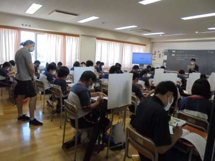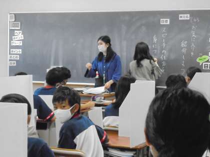 英語の授業では、ALTのローワン先生が後方から学習の支援を行ってくれています。国語の授業では、8月25日から、鈴木先生の産休代替として中田先生が中越先生とともに、授業を行っています。