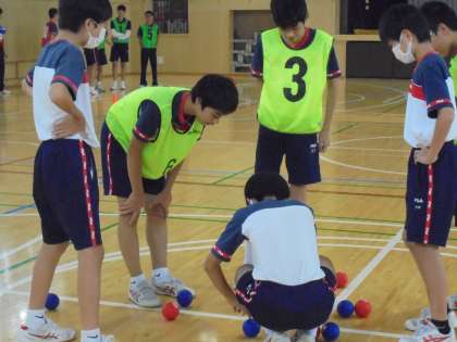 本日の3時間目は、3年生男子の体育「オリパラ教育」ということで、「ボッチャ」という種目に挑戦しました。