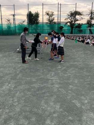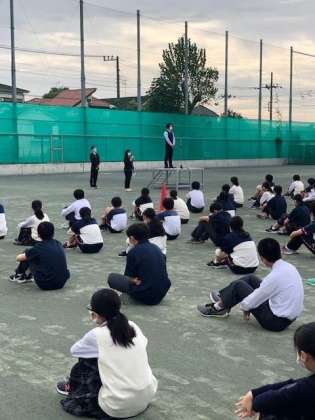 全校生徒が集まった姿は、列が整然と整い、壮観でした。この後の体育祭の活躍につながっていくと期待が高まりました。  (副校長 新妻)
