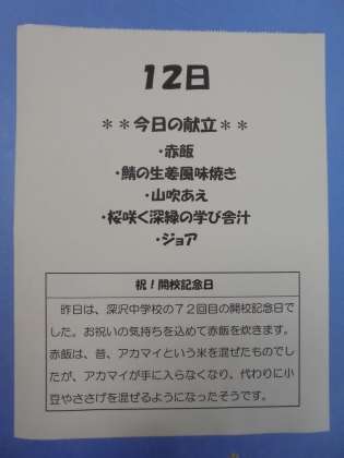 昨日の開校記念日にちなんで、本日の給食は「お祝い献立」でした。
