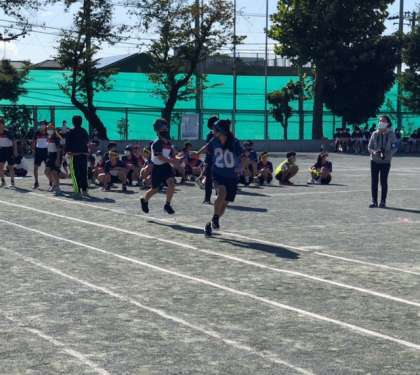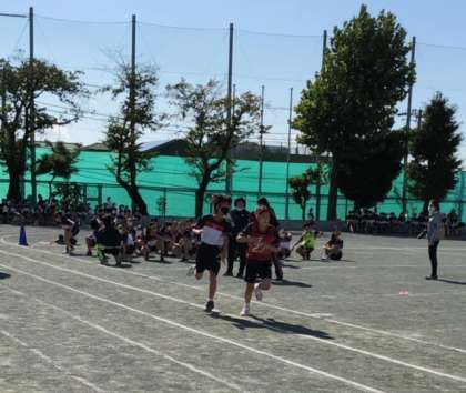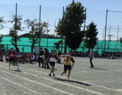1年生全員リレーです。ハイキューや鬼滅の刃の曲に背中を押されてバトンをつなぎます。