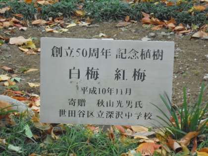 1・2年生の昇降口の向かい側は、創立50周年の時に寄贈された紅白梅があり、背景には立派な松の木と天気が良ければ富士山が見える絶景となっています。