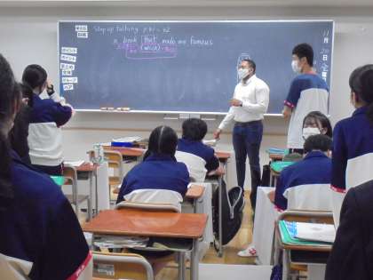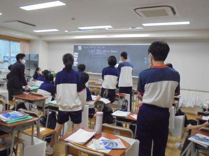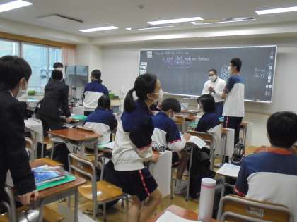 ALTのアキーム先生が、日本に関するクイズをたくさん用意してきてくれました。3年生でも、内容が難しくて考えてしまうようなクイズだったので、大いに盛り上がりました。チャイムが鳴ってしまって「えー?」と思わず残念がる授業になっていました。