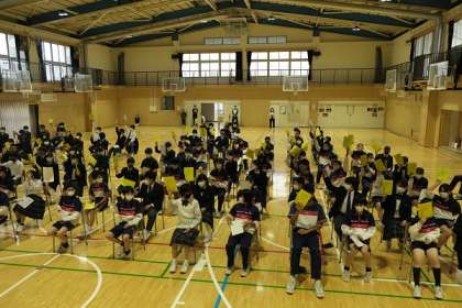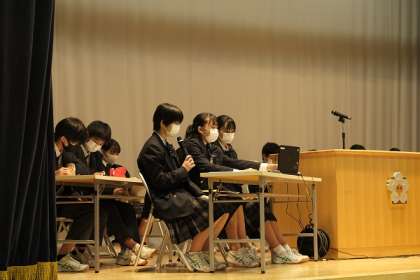 昨日の6時間目、生徒総会を2年生がアリーナで、1・3年生は教室にZoom生配信で行いました。前回の反省のもと、当日はスムーズに総会を成立させることができました。