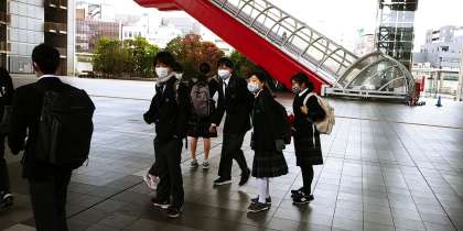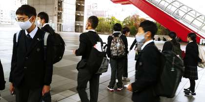 順調にチェックを受け、昼食を食べています。広場は深中生で一杯です。
