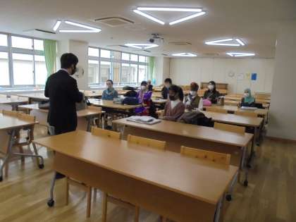 本日の5・6時間目、1・2年生の総合的な学習の時間で、国際理解教育として「留学生が先生」という授業を行っています。