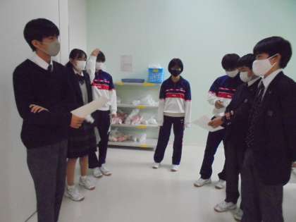 廊下には、各学年の学級委員などの代表者が、教室へご案内するために待機しています。