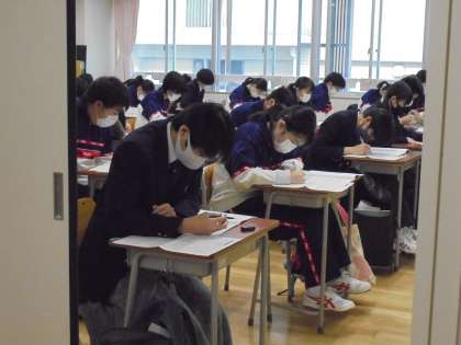 3年生の社会と国語では、入試に向けて実践問題を行っていました。シーンと緊張感の漂う授業風景で、とても頼もしく感じます。