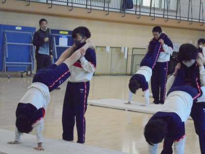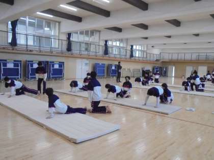 多分、一番気温が低かったのが、格技室でのマットの授業でした。しかし、みんなしっかりと体を動かすことができていました。