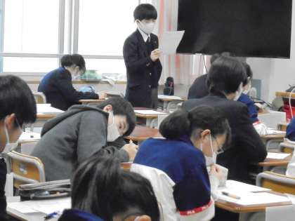 3年生は、「より高い目標を目指し、希望と勇気をもって着実にやり抜く強い意志をもつ」で、自分が企業家となったとしたら、どんな業務内容と人材採用をするかの判断・決断のプロセスを体験しながら、授業が進められました。