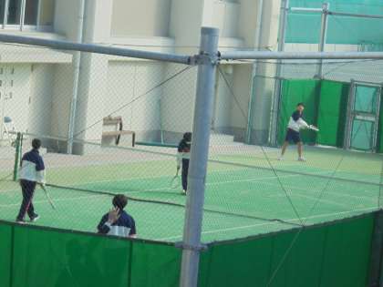 今週から、昼休みのテニスコートの貸し出しが始まりました。各学年ごとに、ローテーションを組んで、体育委員の管理でテニスを楽しんでいます。