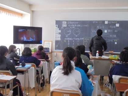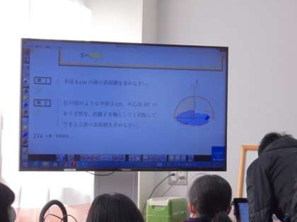 各班の結果を先生が写真に記録しています。結果を画像や数値で確認し、公式の確認と演習に取り組みました。