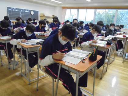 私立一般入試が一段落して、3年生が教室に戻ってきました。21日(日)の都立一次・分割前期の学力検査にむけて、いよいよ追い込みです。全校をあげて応援したいと思います。