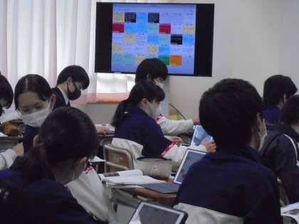 2年生の道徳の授業で、意見の共有を図る場面でのiPadの活用が行われていました。