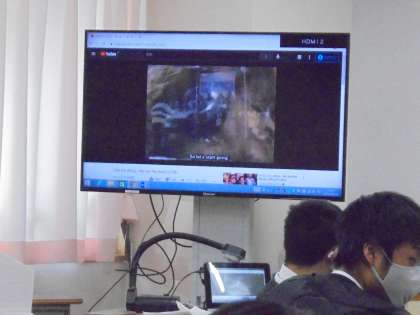 英語の授業では「We Are the World」の動画を視聴していました。YouTubeの視聴ができるようになって授業内容の幅が広がりました。
