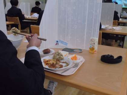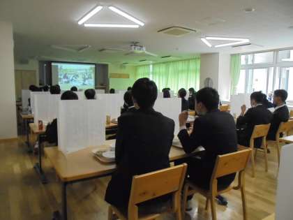 今週は、3年生にとってイベントが盛りだくさんです。まず、今日は、3年3組がスペシャルランチ給食がランチルームで行われました。