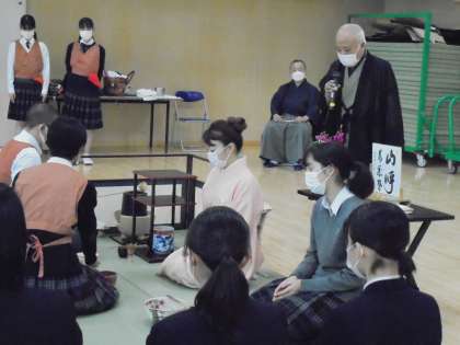 本校茶道部でもご指導いただいている先生方による、お手前の披露と解説がとても分かりやすかったです。