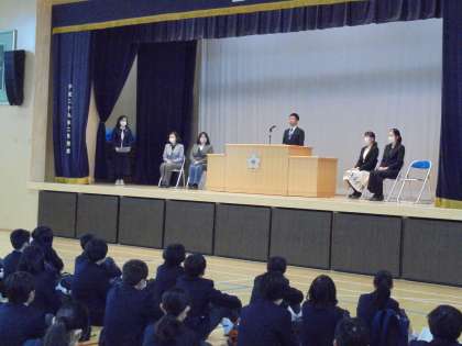 4月6日(火) クラス発表後、着任式と始業式が行われました。規律正しく、緊張感のある式となりました。2年生は後輩ができ、3年生は最高学年として深沢中学校を引っ張っていく存在になります。全てのことに全力で取り組み、悔いの残らない素晴らしい1年間にしてほしいと思います。 (大池)