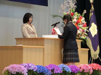 誓いの言葉の「love myself」が印象的でした。明日から全校生徒406名で、本格的なスタートです。 (森岡)