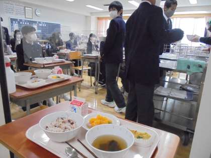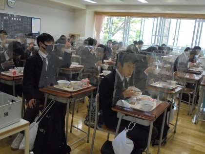 そして、今年度は、透明のパーテーションを購入したので、視界も開けていて快適な食事環境が整いました。以前と同じ、おしゃべり無しの給食時間ではありますが、新しい仲間との食事にみんな満足そうでした。