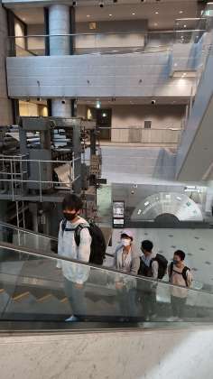 2つの班が、ニュースパークに到着しました。どちらの班も、8階の放送ライブラリーに向かいました。みんな、元気です!