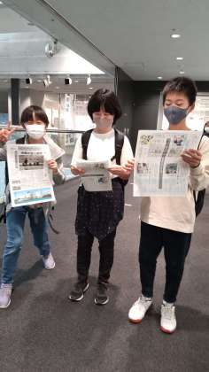 食事が終わると、完成した班ごとの新聞(世田谷区立深沢中学校新聞)を受け取り、大喜びしていました。