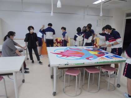 生徒会によるスローガンと美術部によるシンボルマークが無事に完成し、いよいよ明日の本番にお披露目です。