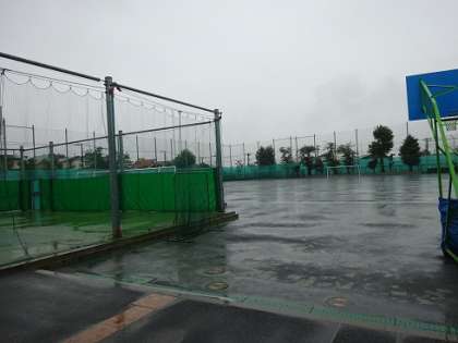 校庭も水たまりというより、小さな浅い池のようなものができています。