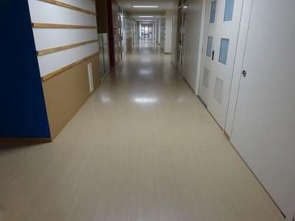 本来雨が降ると湿気が下に降りてくるため注意して歩かなければいけないところですが、主事さんがいつもとは異なる用具で掃除してくださり、安全な廊下をつくってくれています。
