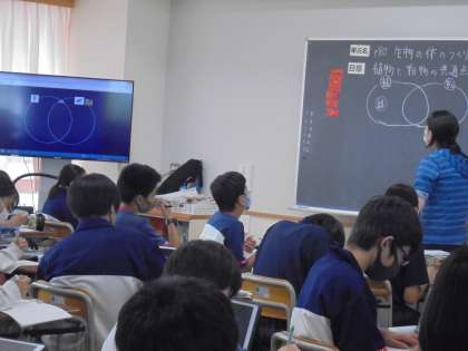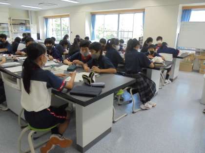 1年生は理科室で、2年生は教室で理科の授業を受けていました。