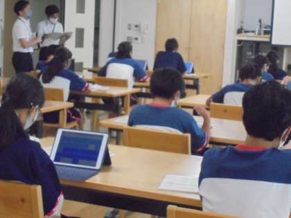 授業が終わり教室に向かう生徒たちが、授業の発問について語り合いながら、階段を上っていく様子が見られました。今日の授業が生徒の心に、何らかの刺激を与えたのだと感じることができました。